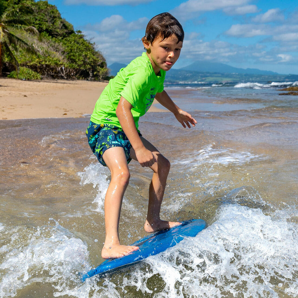 La ceinture semi-élastiquée de ce boardshort s'ajuste de manière précise à la taille de l'enfant. Le cordon de serrage périphérique évite que le short de bain ne bouge une fois en place, et permet de jouer sans crainte dans les vagues !