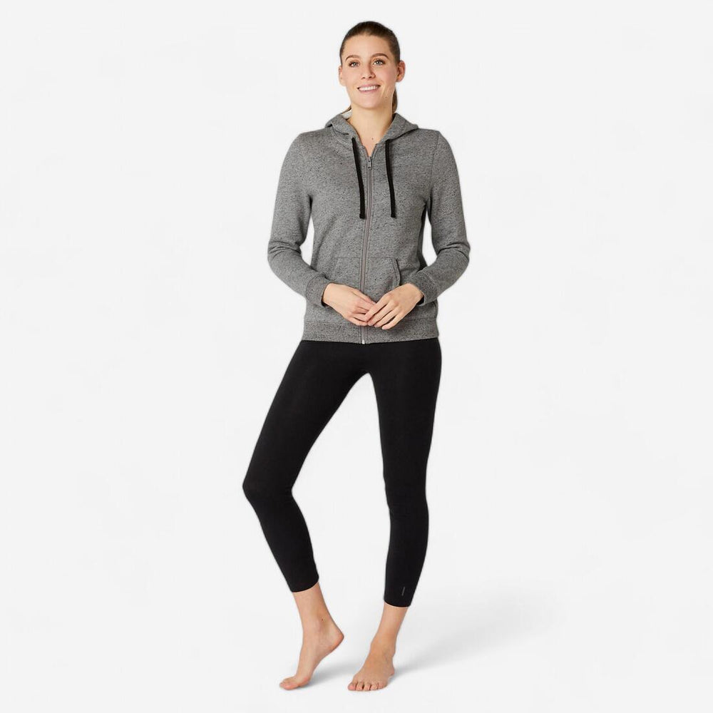 Sweat zippé à capuche fitness femme - 500 gris