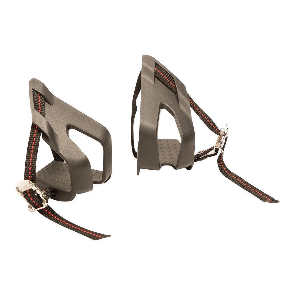 Ces cale-pieds s\'adaptent à toutes les pédales plates à cages percées.