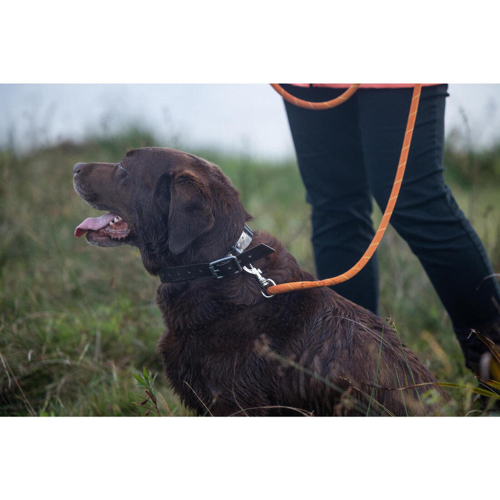 Cette laisse d'une longueur totale de 130 cm en corde d'escalade a été spécialement conçue pour pouvoir promener votre chien en toute sécurité.