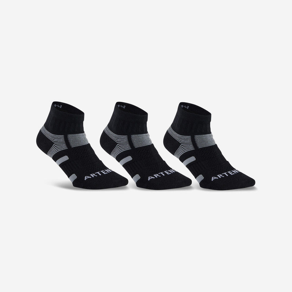 Chaussettes de sport mi-hautes artengo rs 560 noir gris lot de 3