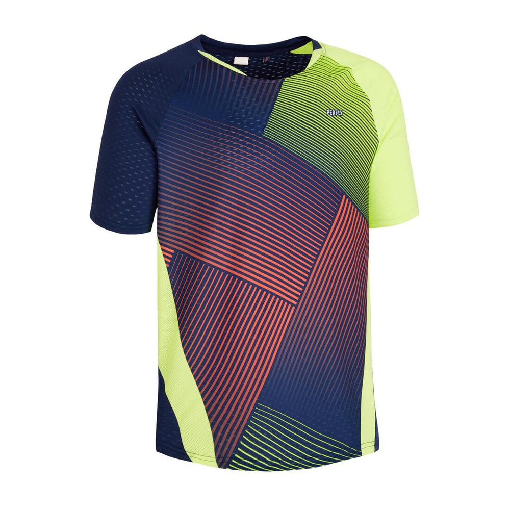 Ce t-shirt technique est fabriqué en tissu synthétique stretch pour garantir votre liberté de mouvement. À combiner avec un short pour former un ensemble. Disponible pour femme dans le même style.