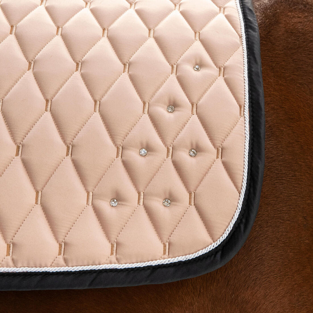 Vous cherchez un tapis élégant et confortable pour votre cheval ? Ce modèle satiné à strass a été conçu pour évacuer la transpiration du cheval tout en s'adaptant à sa morphologie.