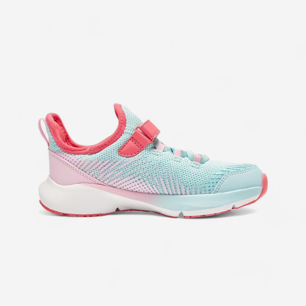 Pour ces chaussures, notre équipe s'est basée sur les besoins des athlètes en herbe et sur les retours de leurs parents : - Les patins en rubber sur toute la semelle augmentent son adhérence - Le scratch permet à votre enfant de mettre et d'enlever ses chaussures tout seul - Les lacets et le strap assure à votre enfant un maintien efficace de son pied - Les renforts sur l'avant et l'arrière de la tige offrent plus de maintien et de protection à votre enfant