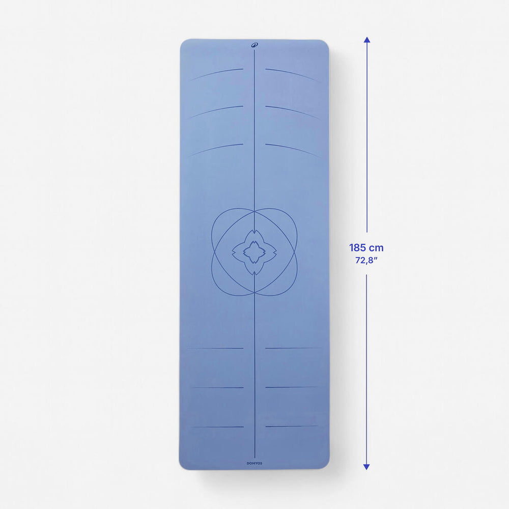 "La pratique correcte du yoga exige une concentration profonde, une respiration adéquate et, avant tout, une précision rigoureuse dans l'alignement du corps. En effet, un alignement imprécis peut entraîner des douleurs ou même des blessures. Pour aider, les débutants notamment, à positionner leur corps correctement, nous avons doté notre tapis de yoga de lignes d'alignement. "