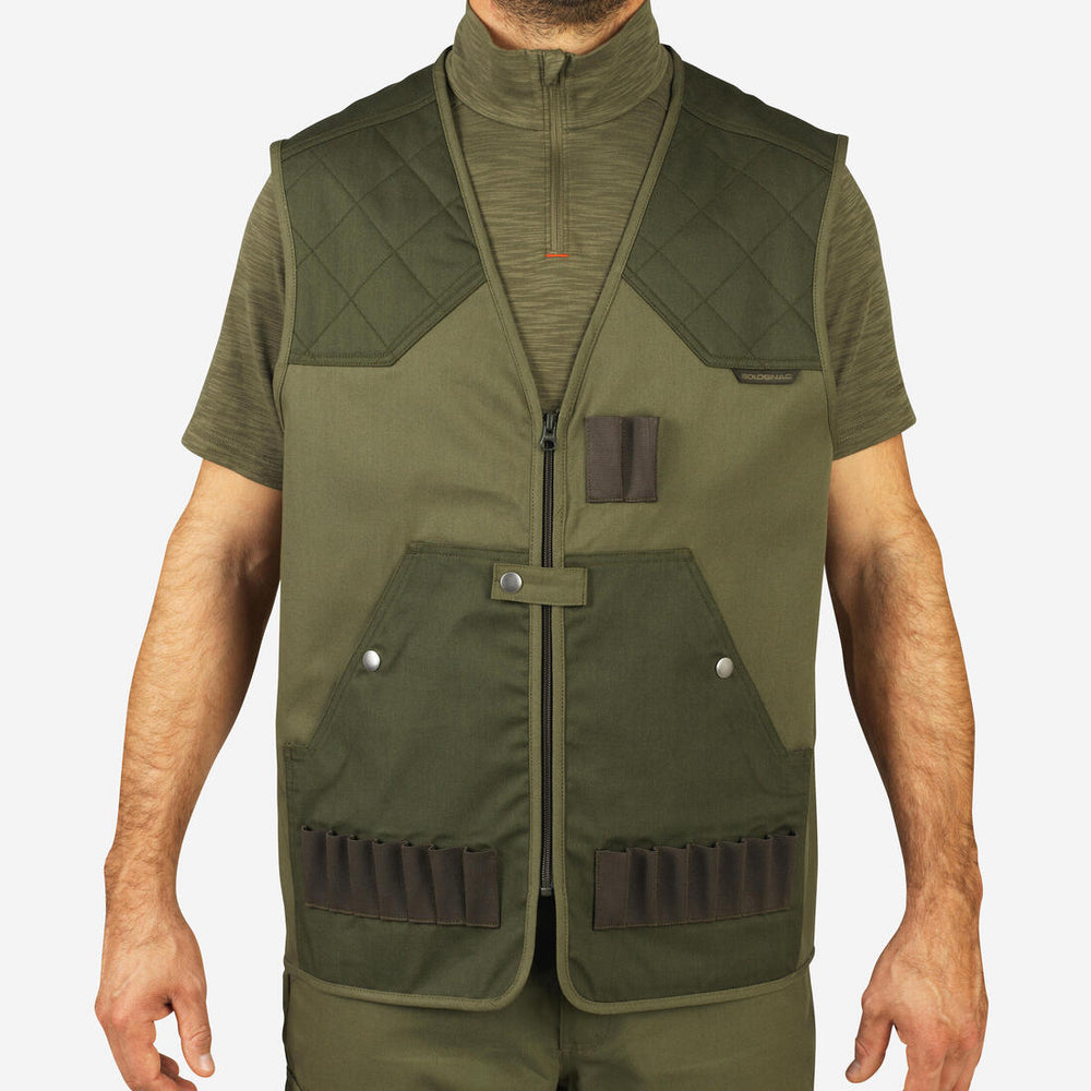 Ce gilet, disposant d'empiècements avec tissu renforcé sur les épaules, permet au chasseur de petit gibier d'évoluer sans gêne, que ce soit en plaine ou dans des milieux boisés plus épais.