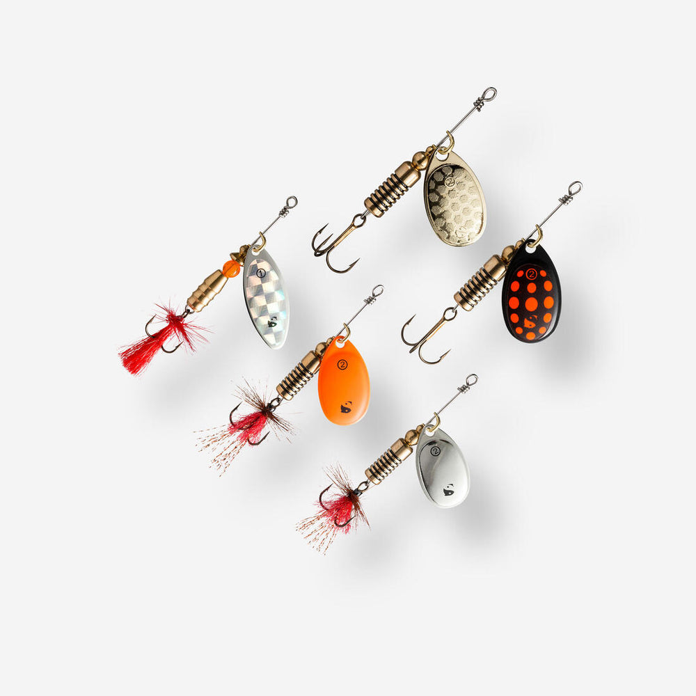 Les 5 cuillers du kit permettent de pêcher dans différentes situations.