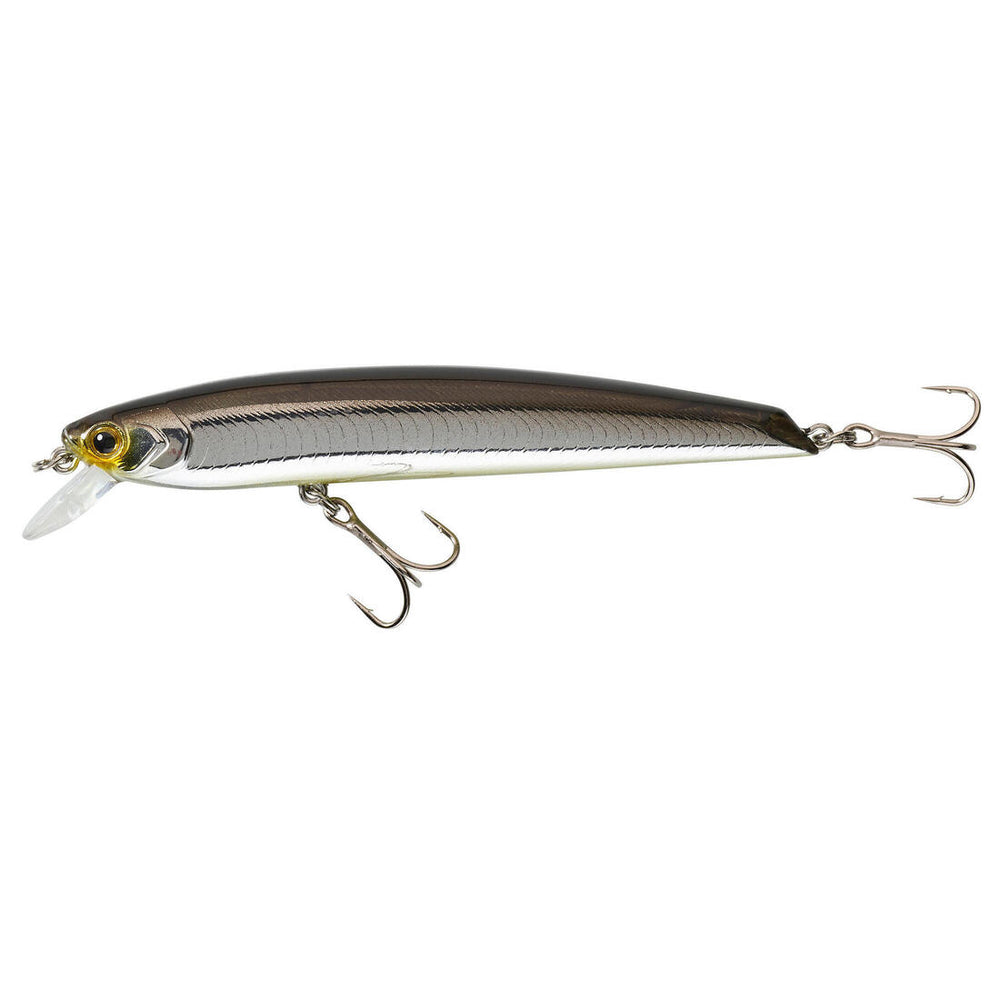 - Taille : 11 cm - Forme : jerkbait - Coloris : ayu, dos noir, sardine, mahimahi, éperlan - Poids : 15 gr - Hameçons : 2 triples VMC 7554 Cn T6 - Densité : Suspending (plonge à la traction, reste à la profondeur d'eau à l'arrêt) - Bruiteur : Oui - Type d'équilibrage : système à bille magnétique - Armature à œillets - Profondeur de nage : entre 40cm et 70cm