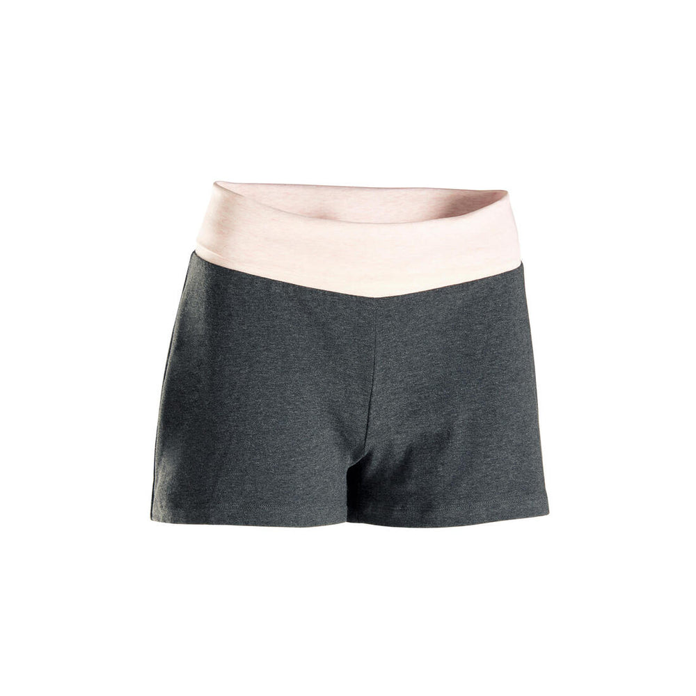 Short yoga femme coton noir/gris chine