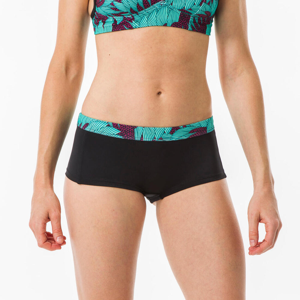 Ce bas de maillot de bain femme de forme shorty à l'allure sportive couvre les hanches, dégage légèrement les fesses et bénéficie d'un cordon de serrage à la taille pour une très bonne tenue.