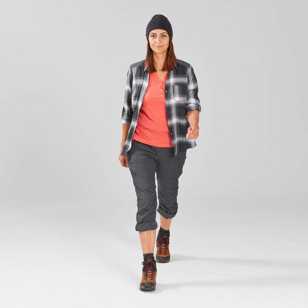 T-shirt de trek voyage - manches courtes - laine mérinos travel 500 corail femme