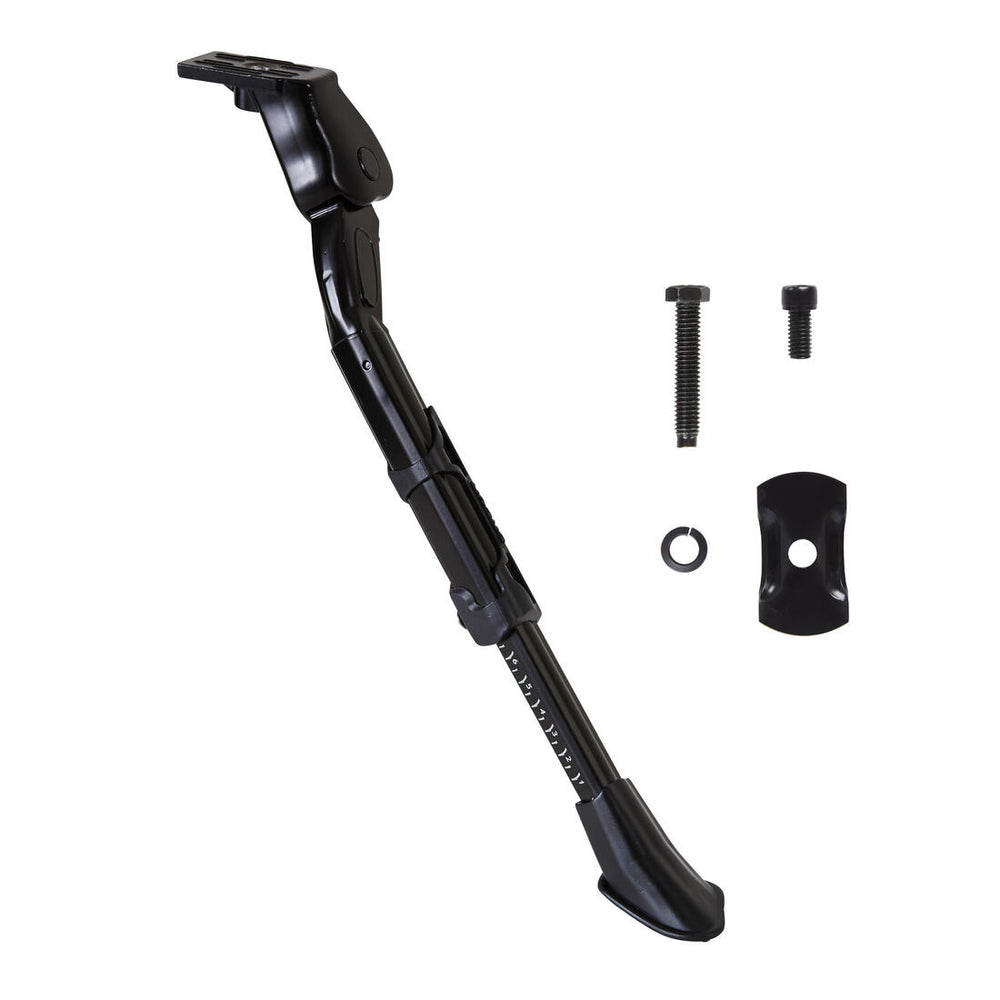 La béquille centrale 500 se fixe au niveau du pédalier. Une plaque centrale est fournie si votre vélo ne dispose pas de l'insert pour la vis (qui est vendue avec le produit).