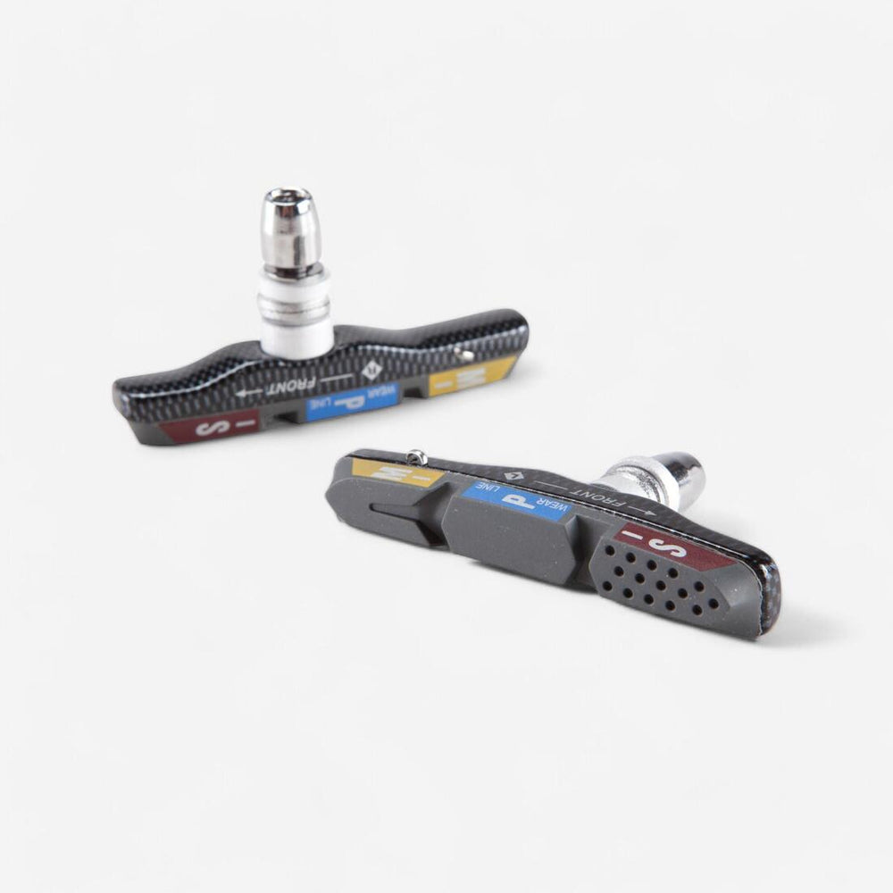 Patins V-brake tri-zones. 3 couleurs pour 3 densités de gomme.