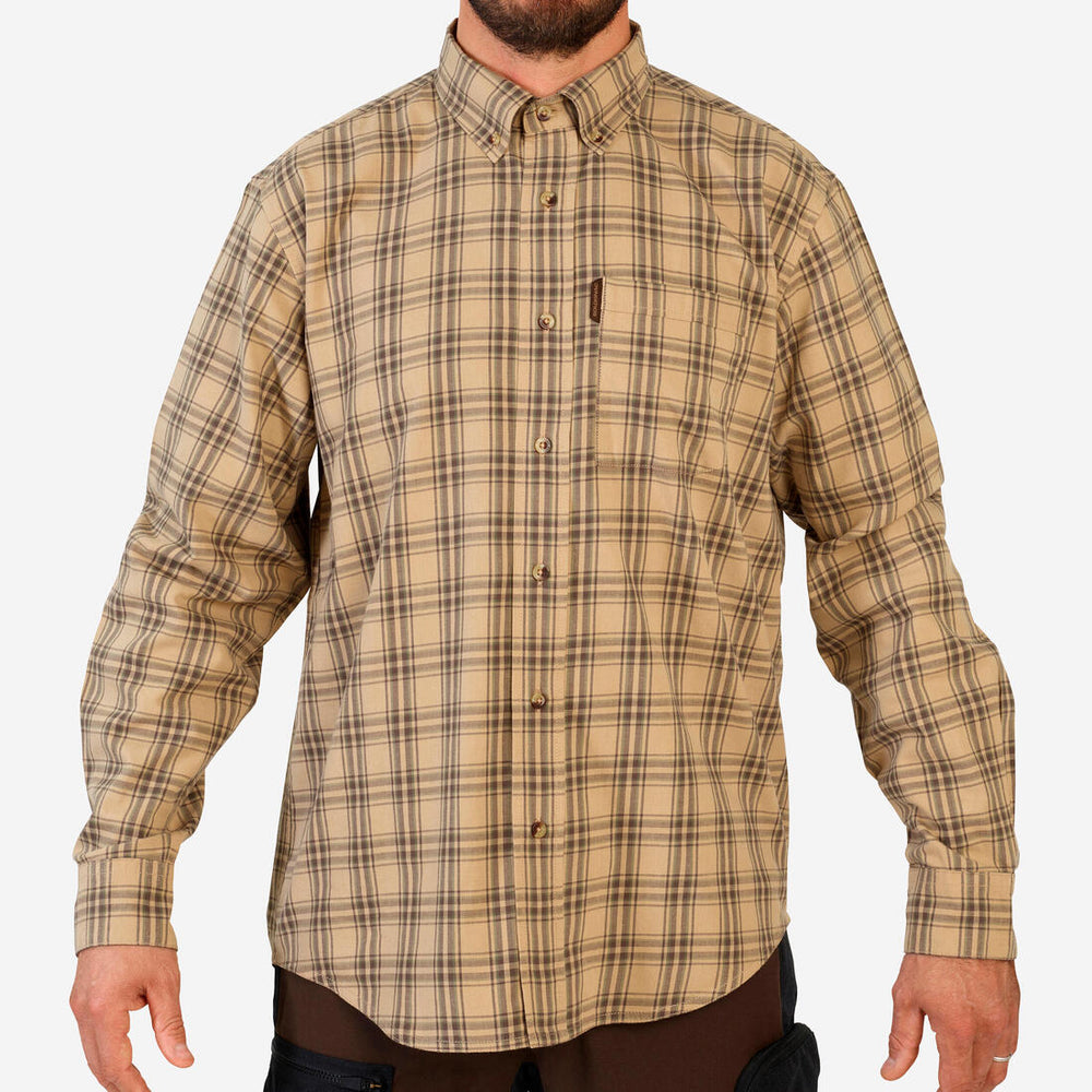 Chemise chasse coton manches longues respirant homme - 100 à carreaux blanc.