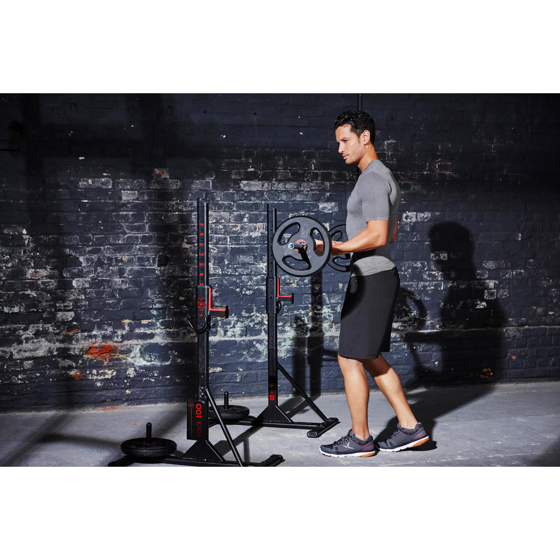 Si vous prévoyez d'utiliser vos poids sur des barres ou des haltères vous aurez besoin de stop disques (réf : 8574652). Ils sont vendus par paire ! Attention, ils supportent 15kg maximum de charge en position verticale.