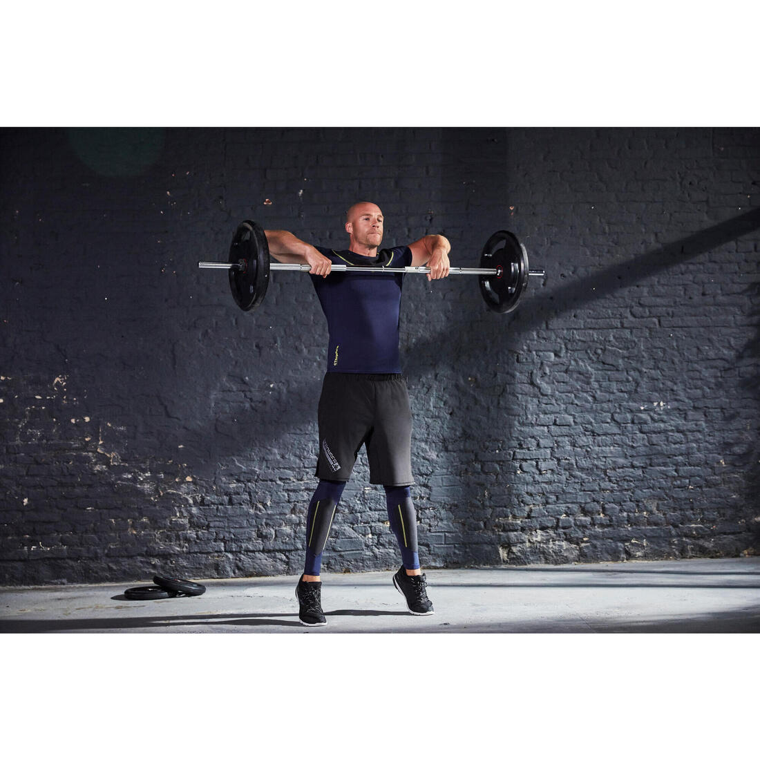 Ce poids de musculation en caoutchouc est compatible avec les barres de diamètre 28 mm, - Barre droite 1,2 mètres (réf : 8289897) - Barre curl 1,2 mètres (réf : 8484124) - Barre triceps 86 cm (réf : 8484125) - Barre courte 35 cm (réf : 1041986) - Barre filetée 45 cm (réf : 8766096) - Barre droite 1,55 mètres (réf : 8289896) - Barre droite 2 mètres (réf : 8289900) II n'est pas compatibles avec les barres d'haltérophilie (qui ont un diamètre de 50 mm).