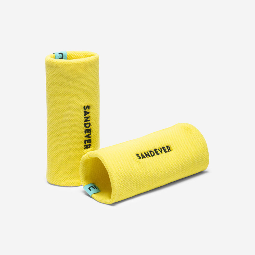 Ce poignet fin de beach tennis long de 15 cm vous permet d'absorber la sueur sur votre visage. Il stoppe le ruissellement le long du bras pour vous apporter une meilleure préhension de la raquette.