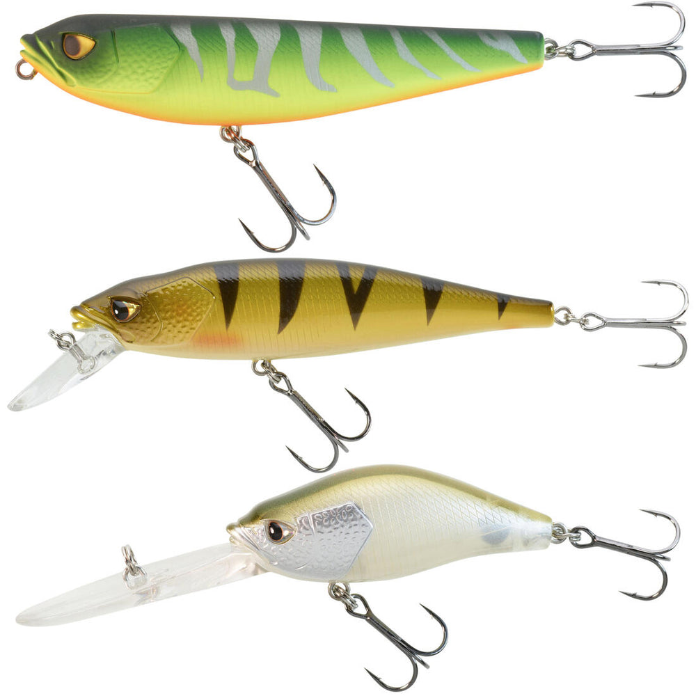 Cette sélection de 3 poissons nageurs (stickbait, jerkbait et crankbait) est destiné à la pêche des carnassiers. Vous pouvez ainsi pêcher de la surface jusqu'à 3 mètres de profondeur.